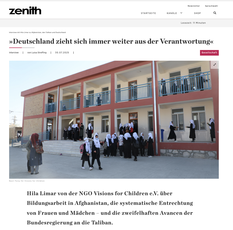 Anfang des Jahres war unsere Vorstandsvorsitzende Hila mit ihrer Schwester und Visions-Botschafterin Wana sowohl beim "zenith Podcast" als auch bei den "Home Girls" zu Gast. In einer Folge vom "opiumpodcast" sprach Hila außerdem über bewusste und unbewusste Privilegien im Alltag, Eindrücke von Reisen nach Afghanistan und die Arbeit von Visions. Hör rein!