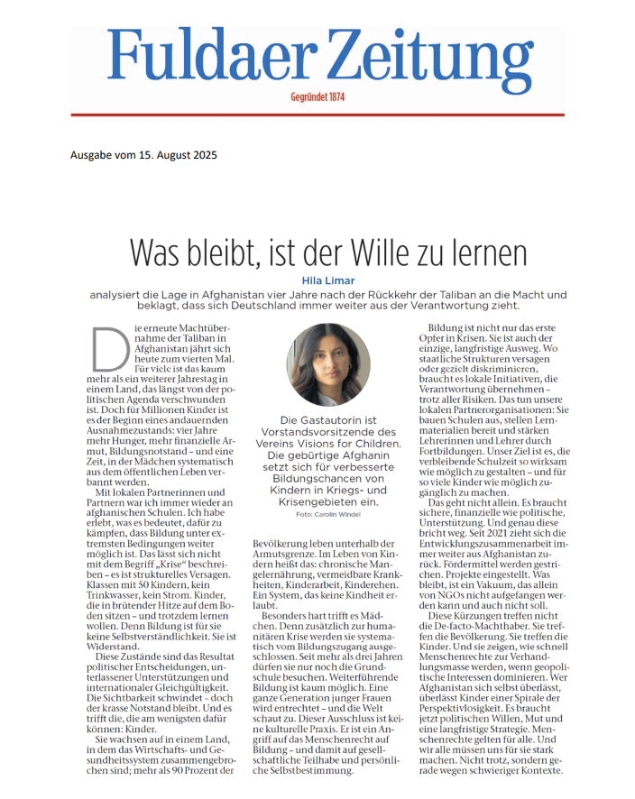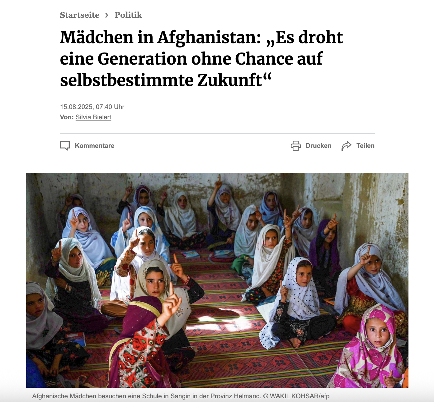 Gastbeitrag "Was bleibt, ist der Wille zu lernen" anlässlich des vierten Jahrestags der Machtübernahme der Taliban in Afghanistan